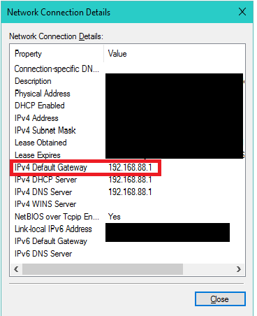 - Once it appears, look at the highlighted area in the image below. It will be your Router login IP.